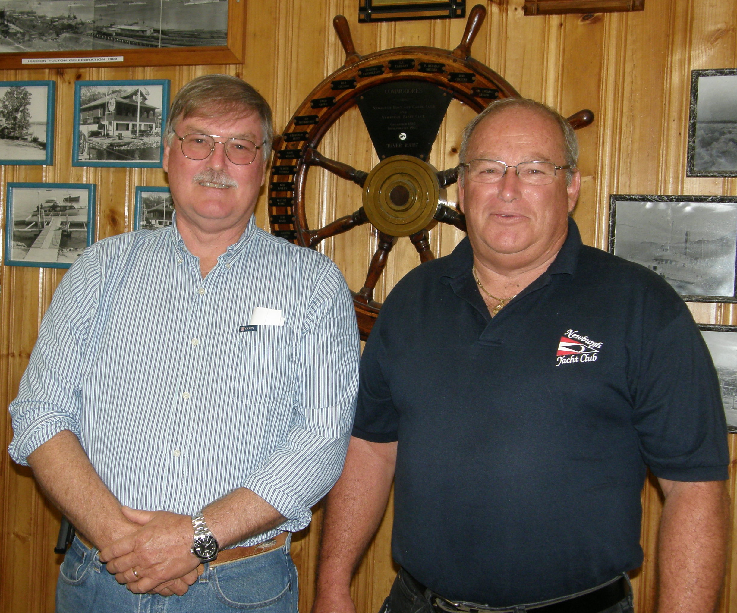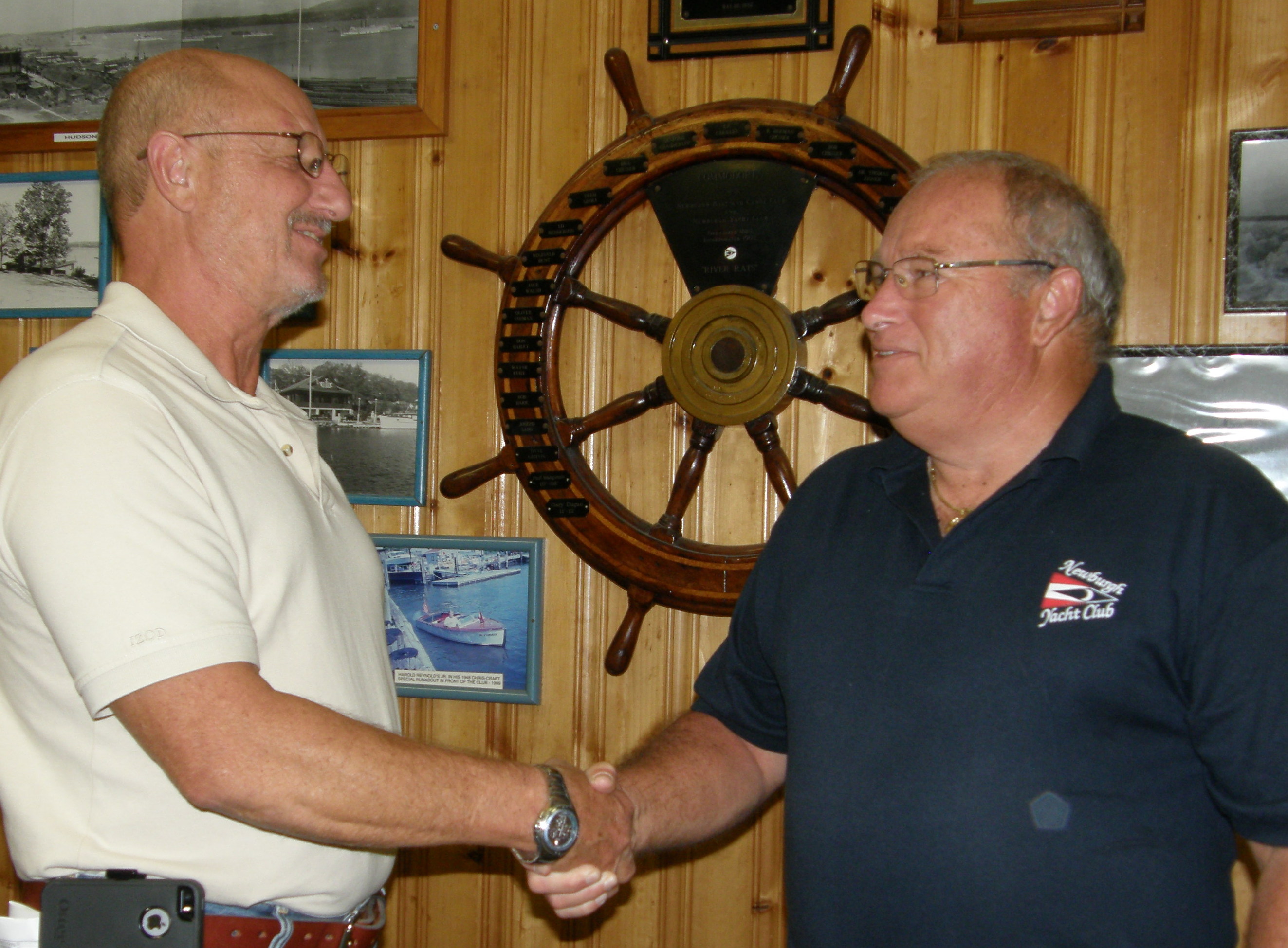 Commodore Greg Dombroski congratulates Richard Bremer on becoming Commodore Elect of the Newburgh Yacht Club.