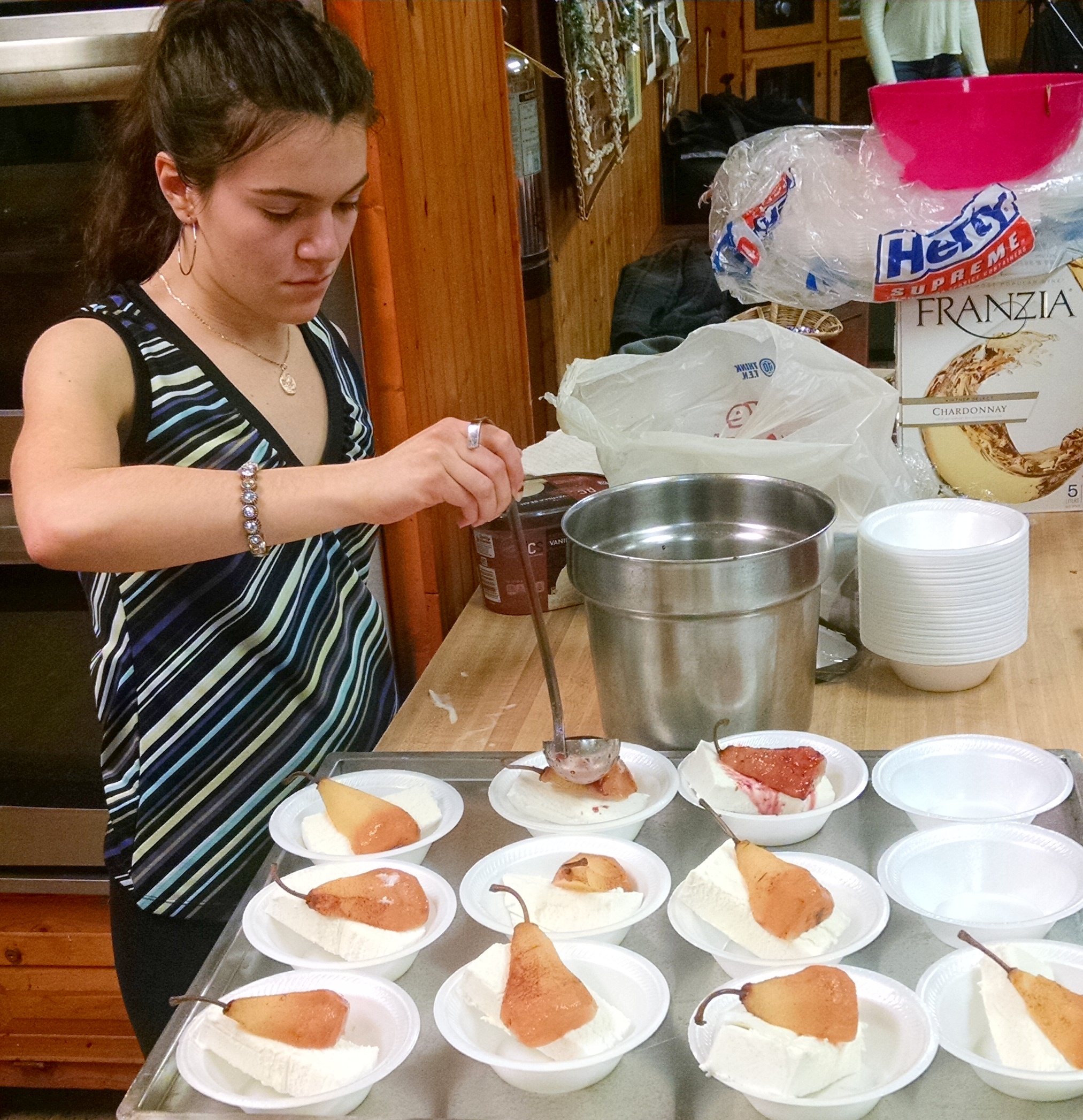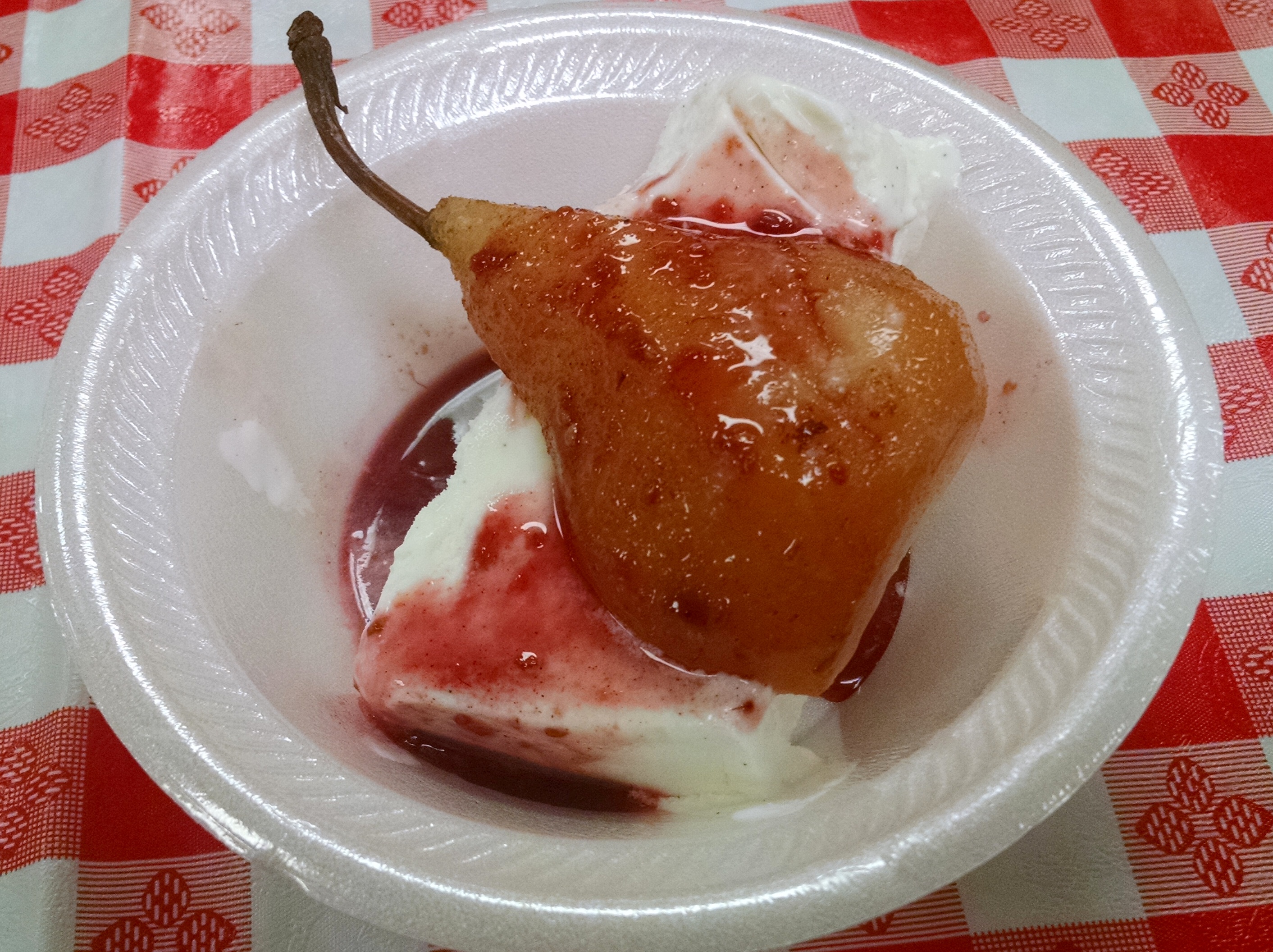 This wonderful meal was topped off with a dessert the members are still talking about. It was pears poached in white wine served on vanilla ice cream topped with raspberry sauce.