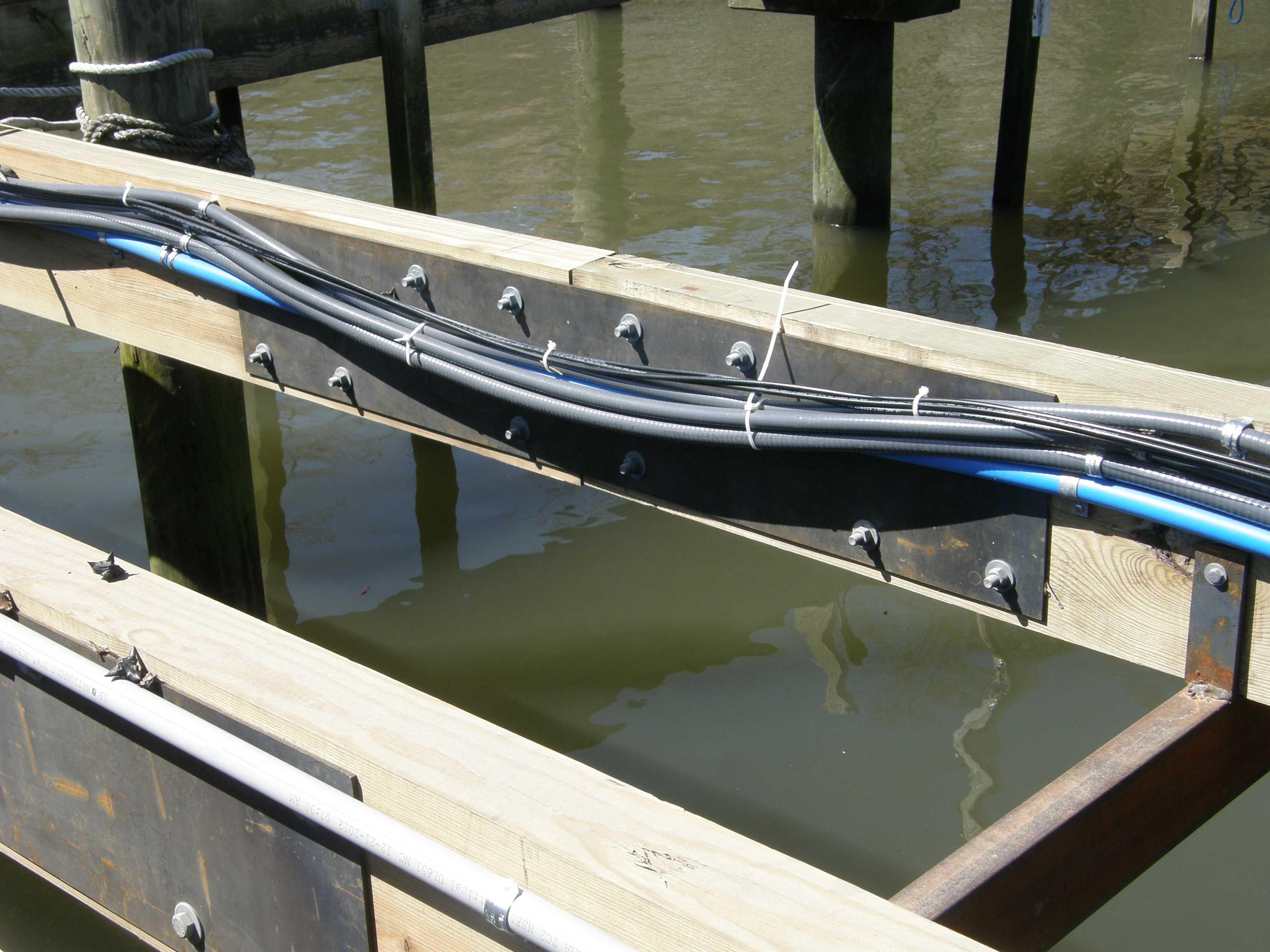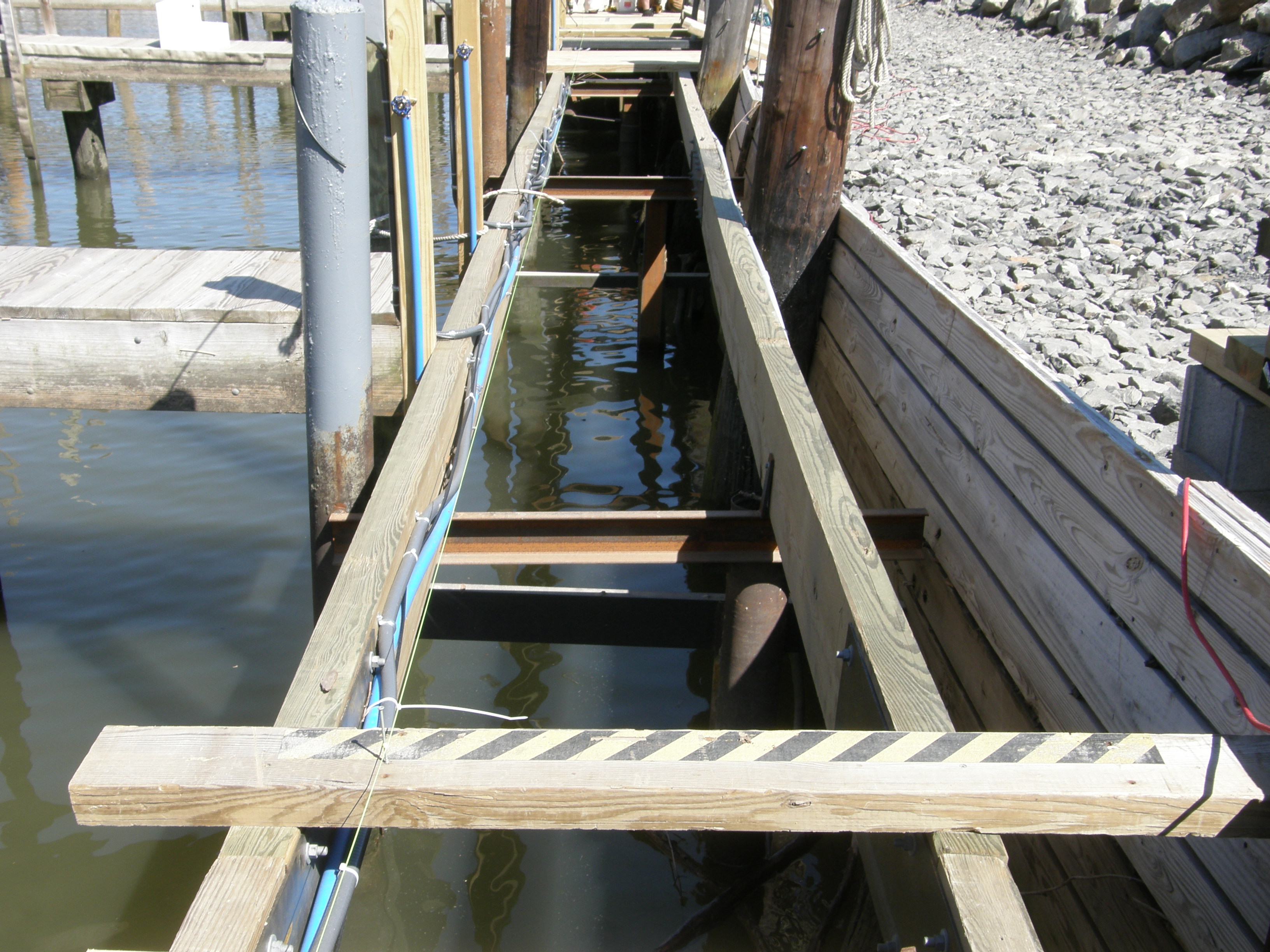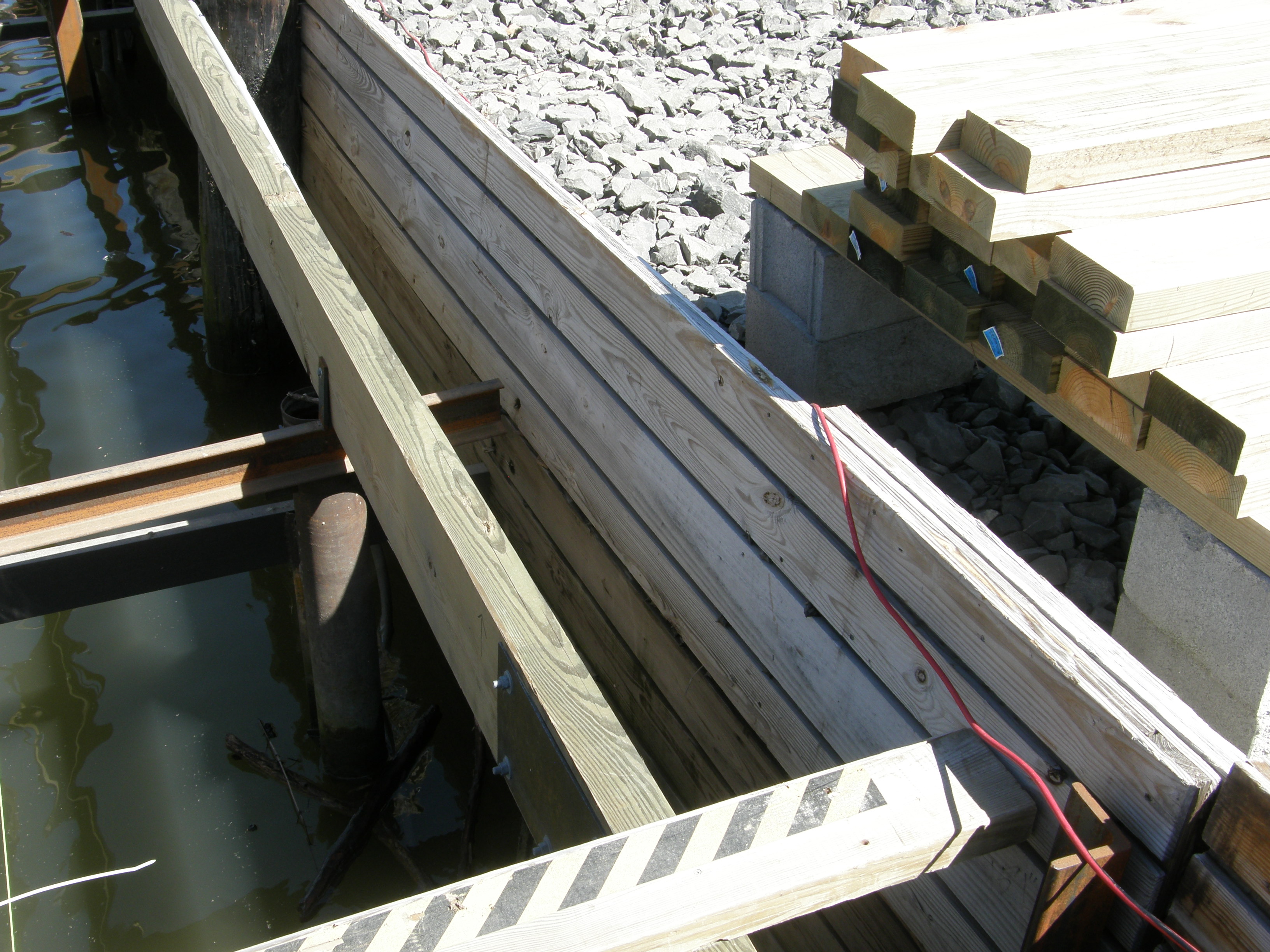 Reinforcing Wall for Breakwater/Roadway Welded Deck Frames installed every 20 feet. 2 X 8 Decking Installed 4 x 12 Stringers joined by metal plates All New Electric and Plumbing Installed