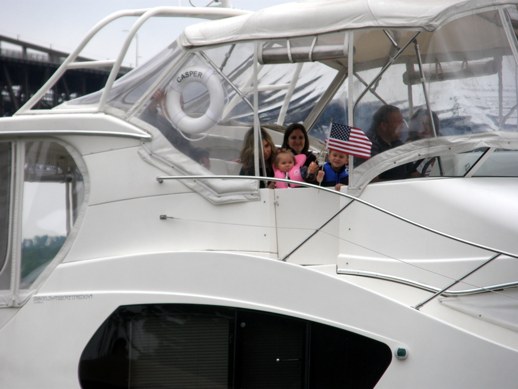 Master of Ceremonies Art Livesey invited those attending to come to the shore line to applaud our members boats as they cruised by and were announced.