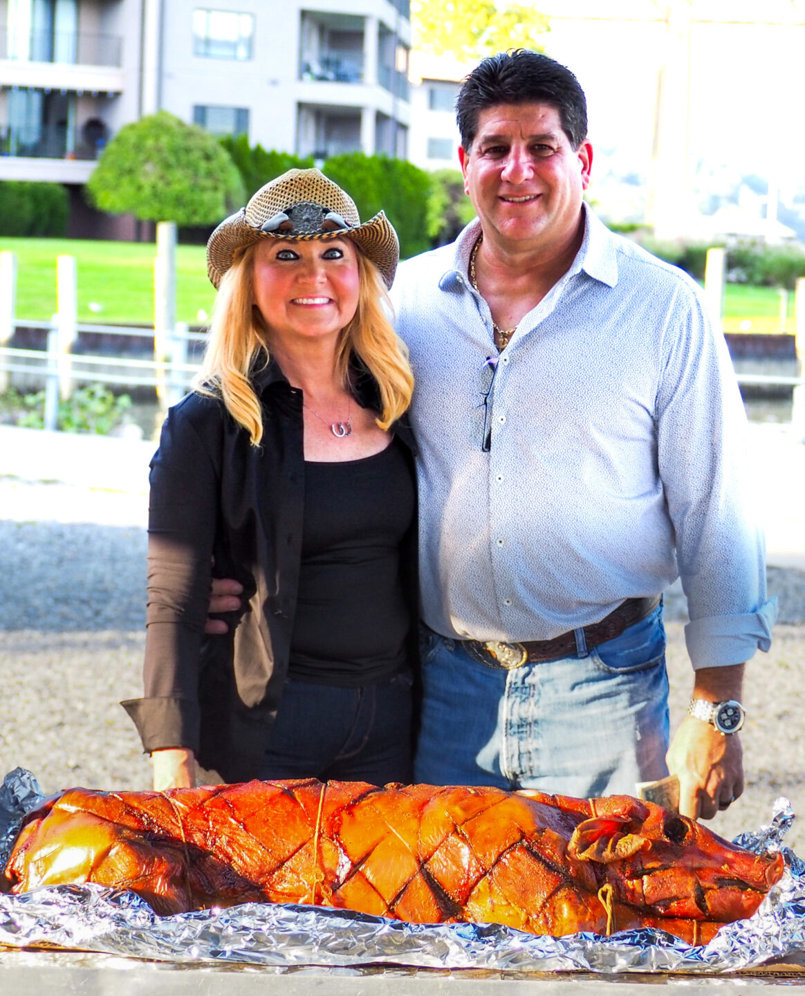 The centerpiece was catered by East Fishkill Provisions Smoke Haus and Deli, featuring smoked chicken, tender spare ribs, and a show-stopping roast pig. Commodore John Disciglio and his wife Carolyn posed by the star menu item.