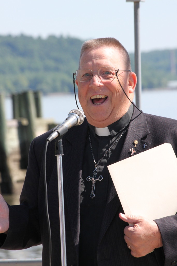 Deacon Peter Haight blesses the boats as they go by and continues the Blessing Service which concludes with a memorial service. We remember club members and immediate family who have passed during the last year. A flower is placed in the river for each of those honored.